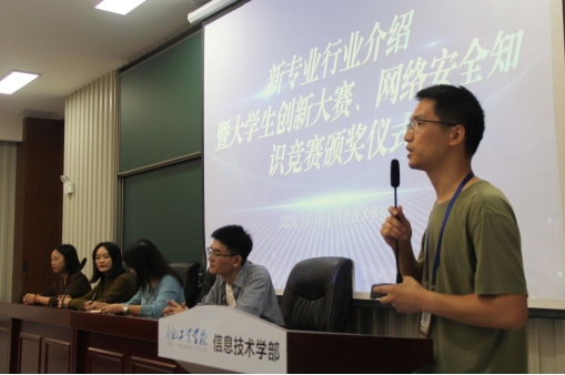 数字化时代,随着网络技术的发展日新月异,对专业人才的需求也日益增长。为了紧跟时代步伐,培养更多创新人才,合肥工业学校信息学部于2024年10月16日下午3点半在信息学部二楼阶梯教室举行了一场主题为“智联网络 创新未来”的新专业行业介绍讲座暨大学生创新大赛、网络安全知识竞赛颁奖仪式。
