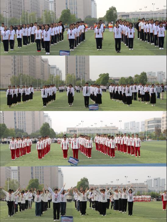 随着激昂的《运动员进行曲》响起,各班级方阵迈着矫健整齐的步伐,高喊富有班级特色的口号依次入场,展现了我校学生朝气蓬勃的精神风貌。紧接着,全体师生共迎国旗,行注目礼。礼毕,学部主任张健致开幕词,鼓励全体运动员发扬奥运精神,积极进取,努力拼搏;要求裁判员坚守岗位,公正严明;号召全体工作人员忠于职守,热情服务,保障安全。裁判员代表和运动员代表分别庄严宣誓。最后,校党委委员、副校长董云霞宣布本次赛会正式开幕。