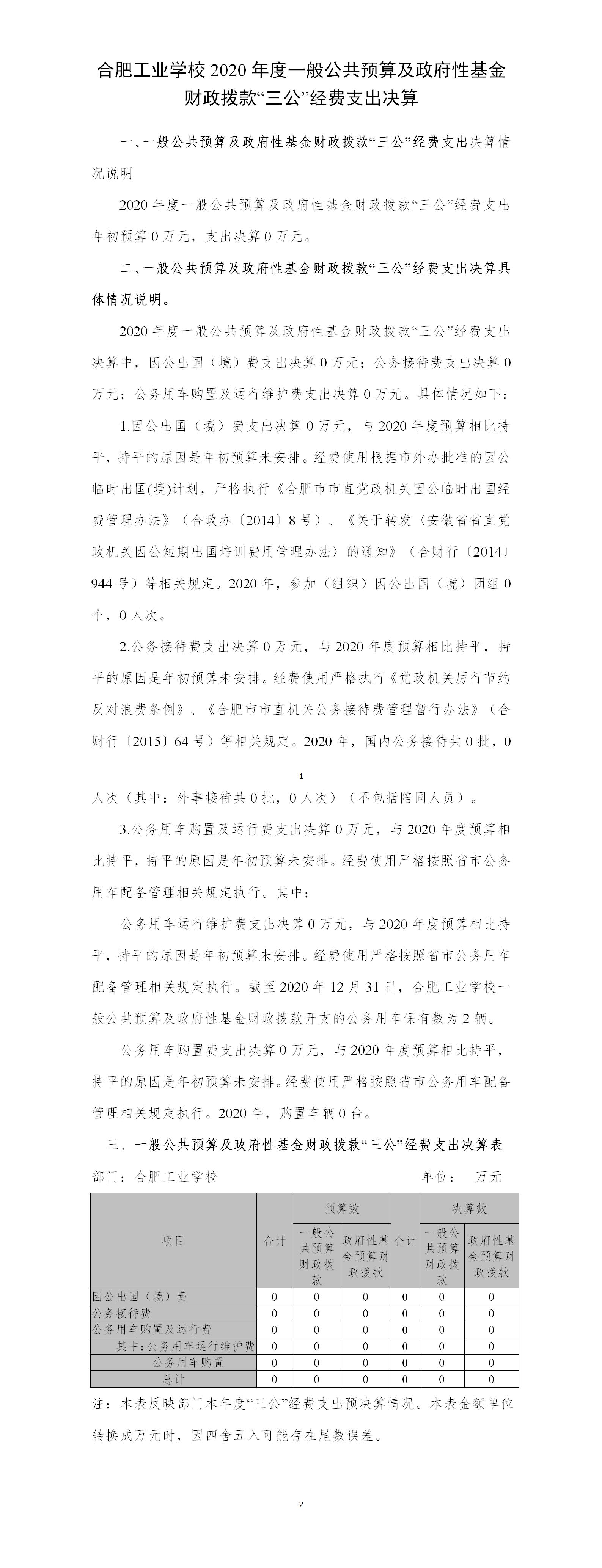 2、合肥工业学校2020年“三公”经费决算公开
