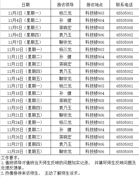校领导工作日接访安排表(2025年11月)