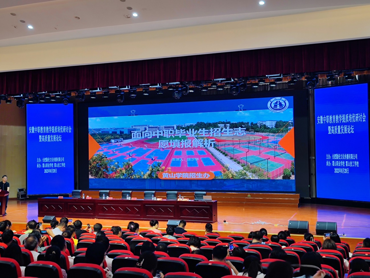 在名班主任论坛中,共有4位来自不同中职学校的教师从全方位分享了职教高考班日常、学习管理,也让参会的班主任老师感同身受、收益匪浅。会议同时邀请了黄山学院、安徽文达信息工程学院等4所应用型本科院校的招生教师,为参会教师分享了有关备考指导及相关内容。