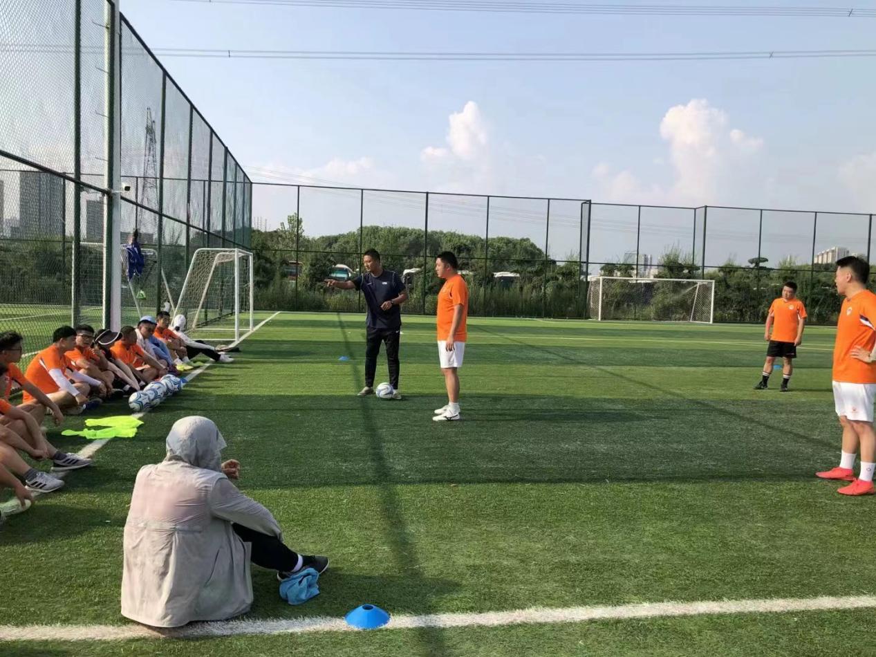 简单的开班仪式之后教师们就紧张地展开了学习。第一节课谢永力老师对老师们进行了分队让相互不熟悉的老师一步步熟悉了起来。期间有趣的游戏和活动向大家阐述了团队的重要性,进一步联系到足球队的组建和团队的建设,之后吴超伟老师开展了一堂足球训练课的教学。