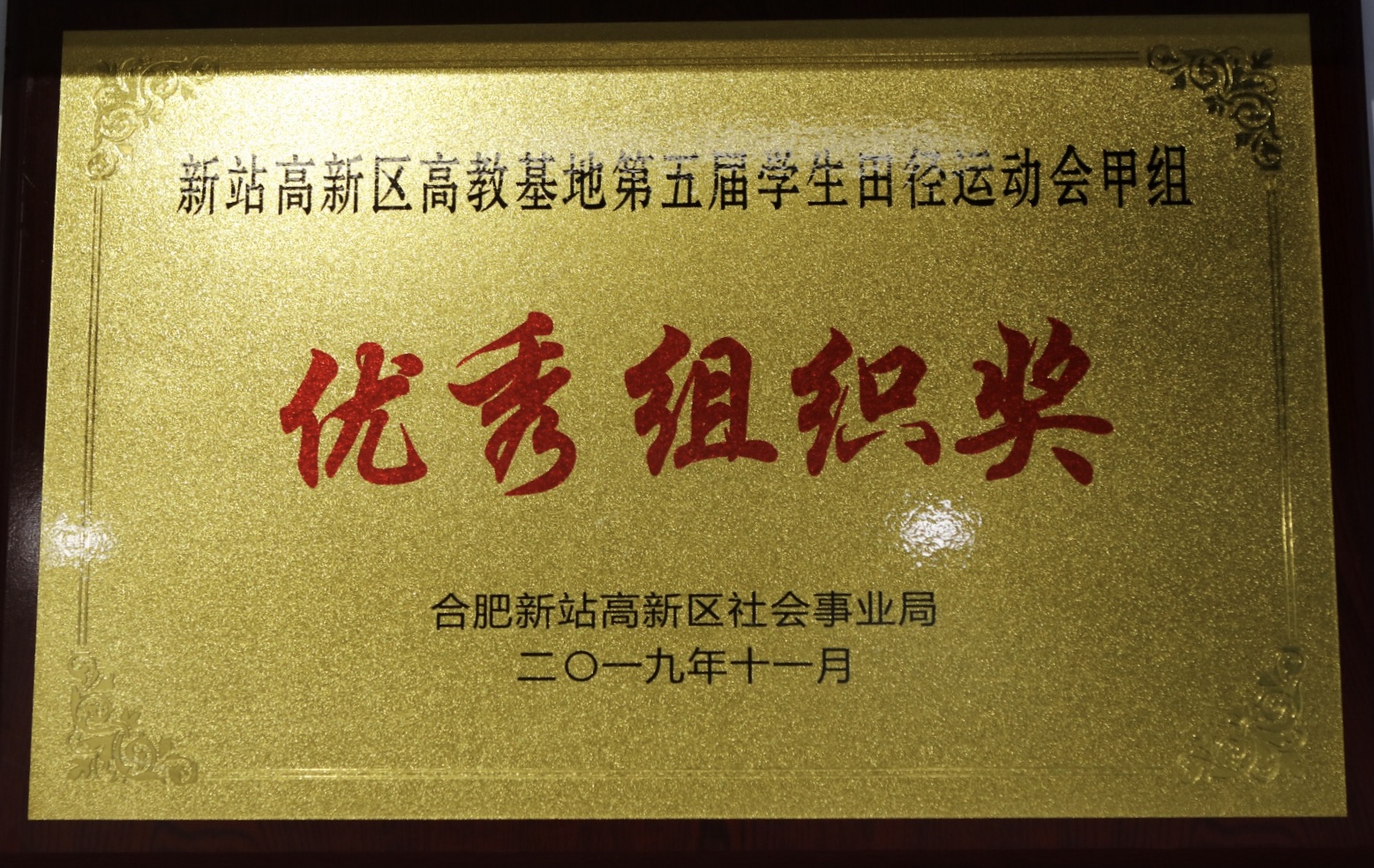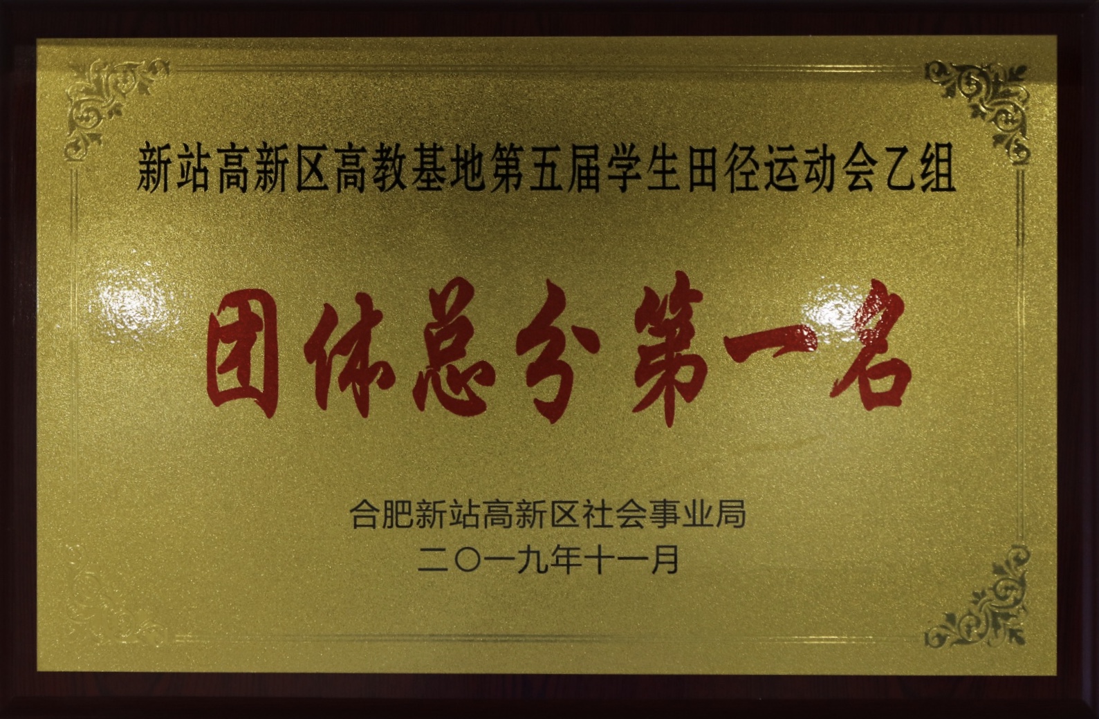2019年新站区高教基地第五届学生田径运动会乙组团体总分第一名、甲组优秀组织奖