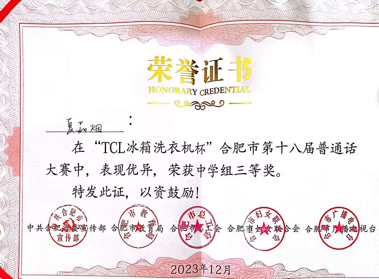 第十八届普通话大赛中学组三等奖