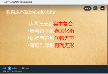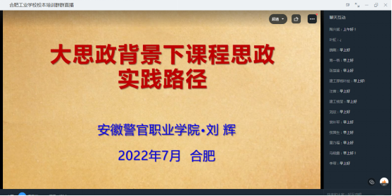 为充分发挥课程的立德树人“主渠道”作用,培养一大批德才兼备的高素质职业人才。2022年7月1日上午9点,合肥工业学校在钉钉网络办公平台精心安排了一场以思政课程和思政建设为主题的线上专家讲座。