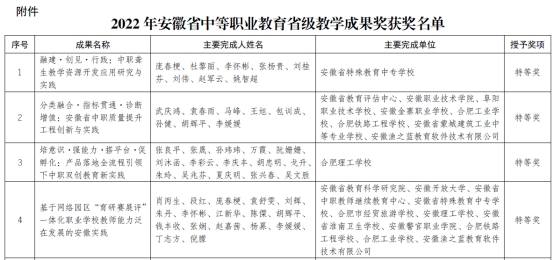 我校教师团队喜获安徽省中等职业教育省级教学成果奖一等奖