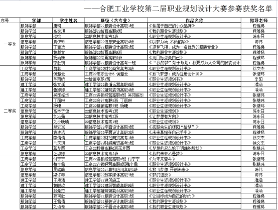 为深入学习习近平新时代中国特色社会主义思想和党的二十大会议精神,认真贯彻落实《教育部关于印发中等职业学校职业指导工作规定的通知》(教职成〔2018〕4号),进一步提高中职生的职业规划意识,培养中职生的社会责任感和创新精神,引导中职生树立正确的成才观、就业观,合肥工业学校在上学期启动学校第二届职业规划设计大赛,本周组织了决赛评比,为期五个月的比赛圆满结束。