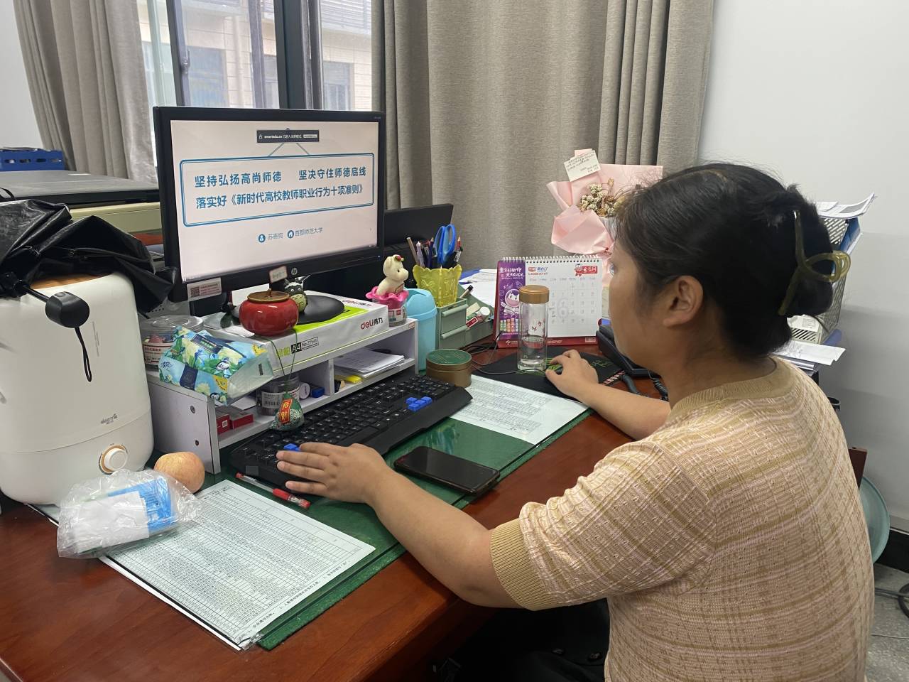本次培训主要分四个模块思想铸魂、固本强基、以案促学及师德引领。按要求选学学时课程并完成有关测试后,可获得认定4学时的教师培训学时。活动一布置后,全体教师纷纷登录网站进行在线学习,观看视频、认真答题。