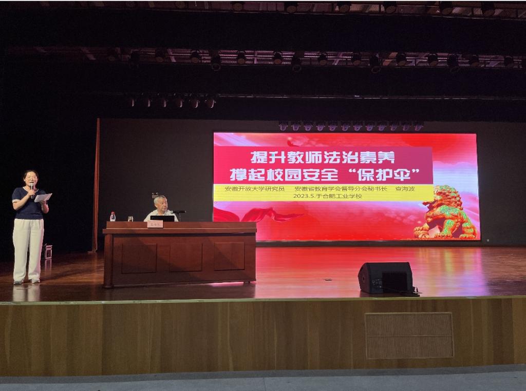 6月30日下午,安徽开放大学研究员、安徽省教育学会教育督导分会秘书长查海波为全体教师带来校园安全教育及中等职业学校相关政策法规解读。查处长从《教师应当知晓的教育法律知识》和《织密扎牢校园安全“防护网”》两大主题进行讲授。