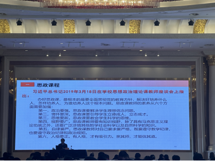 陈教授首先介绍思想政治课,即思政课程,承担着对全体在校学生开展系统的马克思主义理论教育的重要任务。2016年12月,习近平总书记在全国高校思想政治工作会议上的重要讲话中指出:“要用好课堂教学这个主渠道,思想政治理论课要坚持在改进中加强,提升思想政治教育亲和力和针对性,满足学生成长发展需求和期待”。习近平总书记2019年3月18日在学校思想政治理论课教师座谈会上指出:办好思政课,最根本的是要全面贯彻党的教育方针,解决好培养什么人、怎样培养人、为谁培养人这个根本问题。
