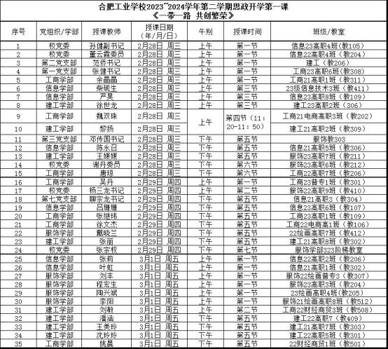 合肥工业学校党委领导杨三龙书记、党委副书记孙健、各党委委员和各党支部书记带头上思政开学第一课,课程旨在让学生更好地理解“一带一路”倡议的深远意义,提高他们的国家意识和全球素养。