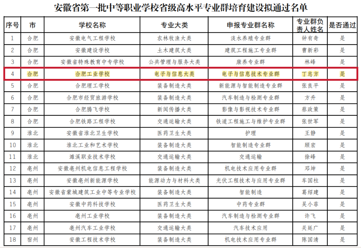 近日,安徽省教育厅发布《关于安徽省第一批中等职业学校优质专业认定暨高水平专业群培育建设评审结果的公示》, 拟通过171个优质专业认定和66个高水平专业群培育建设。