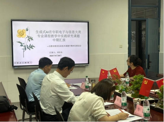 2025 年9月29日上午,合肥工业学校承担的市级信息化课题《生成式AI在中职电子与信息大类专业课程教学中实践研究》中期汇报在寿春中学顺利举行。合肥市教育局装备中心课题管理负责人郭佐铭老师及多位市级教育技术专家组成评审组,对课题研究进展进行阶段性评估。