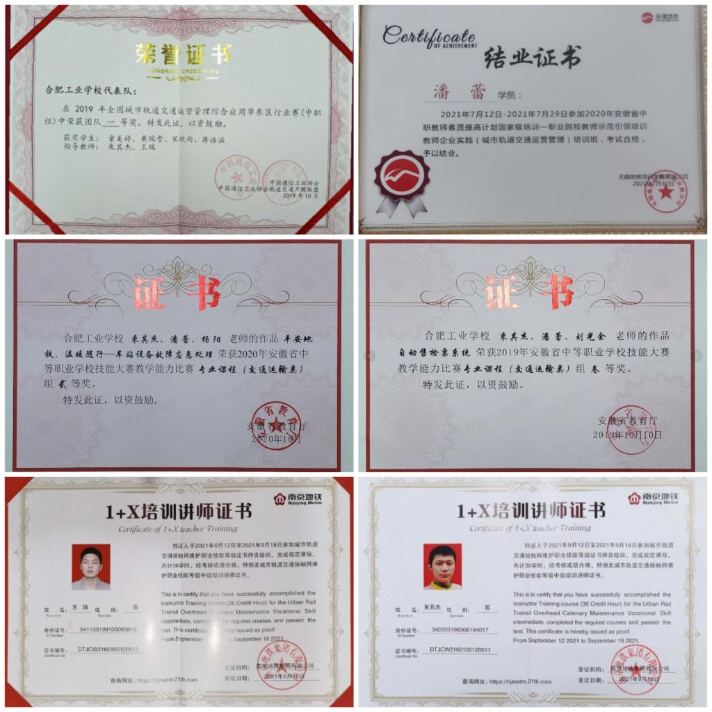 合肥工业学校轨道组教师年龄结构年轻化,专业技能逐年提升。全组教师在认真完成教育教学任务的同时,积极参加各种比赛,利用暑期参加轨道公司企业实践,参加各种继续教育培训,不断学习专业知识,提升技能。两名教师取得了“接触网维护”1+X职业技能等级证书考评员资格。
