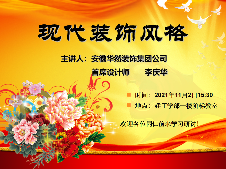 为拓宽建筑装饰专业师生的眼界,使师生明确市场上最前沿的装饰风格,11月2日下午,我校邀请安徽华然装饰集团公司首席设计师李庆华,在建工学部一楼阶梯教室,面向建筑装饰组教师及学部二、三年级装饰专业的学生开展了“现代装饰风格”的专题讲座活动。