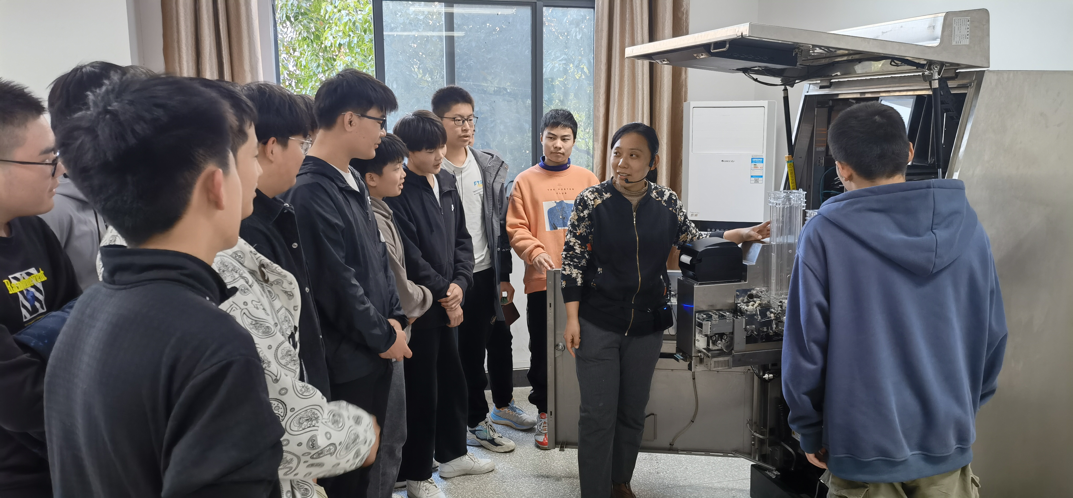 参观的同学兴趣浓厚,情绪高涨,不断的向老师提问。在自由参观期间,不少同学上前体验设备的操作,并在轨道实训室“网红”打卡景点拍照合影。