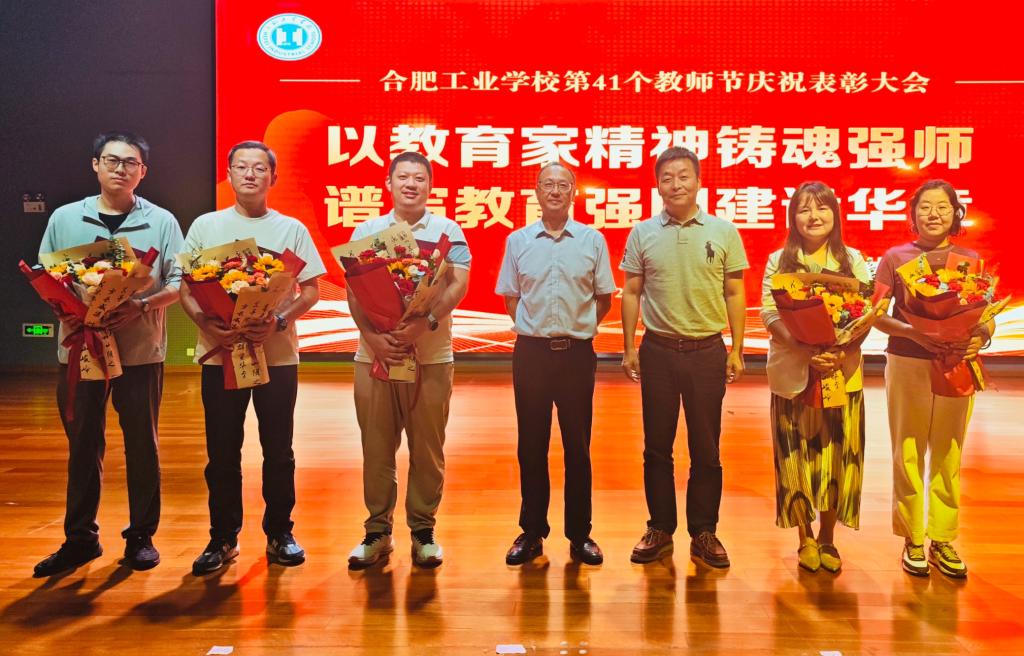 9月9日,合肥工业学校隆重举行第41个教师节庆祝表彰大会。其中建工学部王萍、潘蕾、汤勇、张西岳、束其杰5位老师荣获学校第七届“师德先进个人”称号。