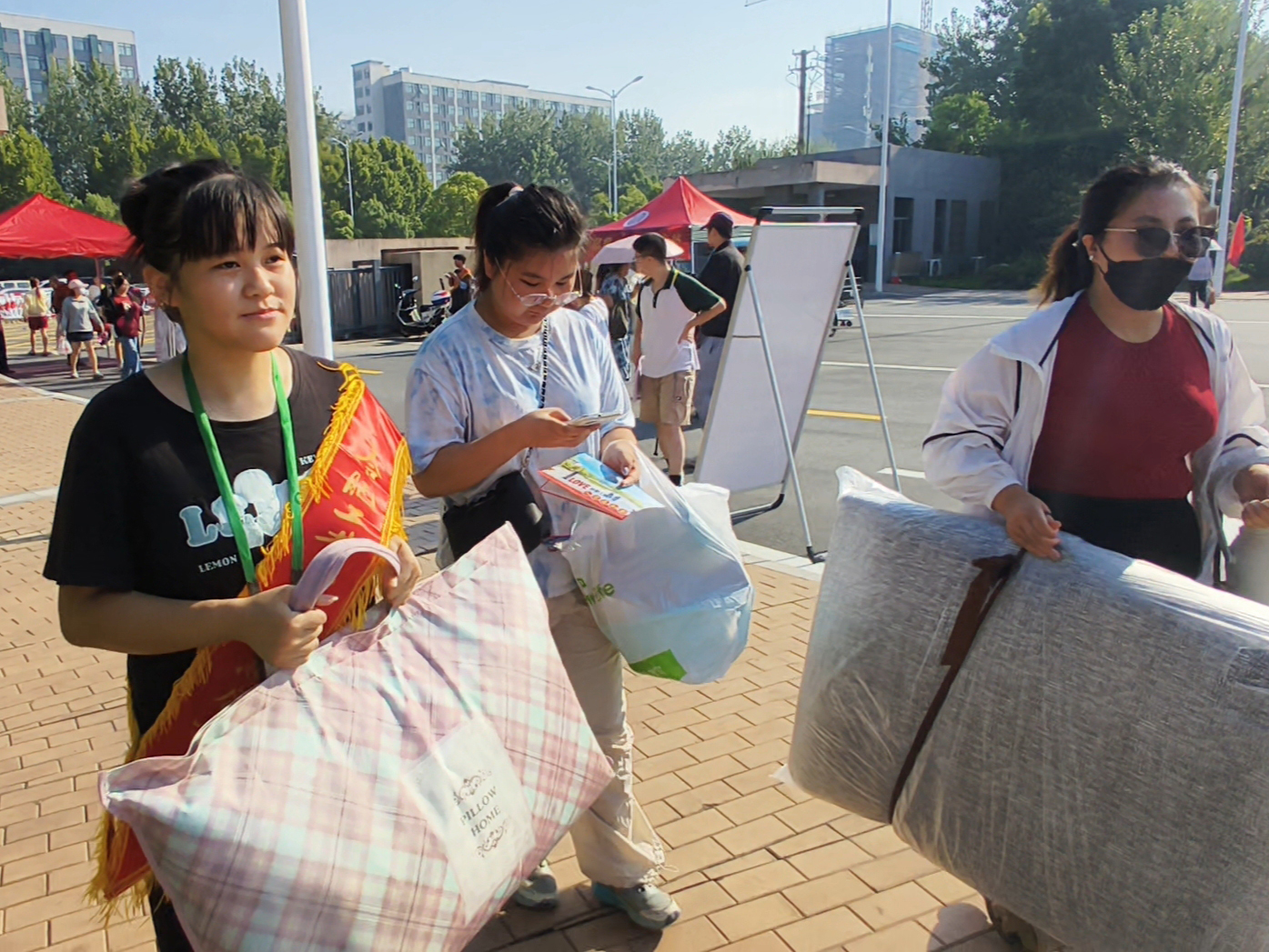 报到期间,志愿者们热情地接过新生手中沉重的行李,并微笑着描述校园生活,成为新生及家长了解校园文化的第一位“导游”。在校园的各个路口,志愿者们耐心为新生指路答疑,详细讲解报到流程和学部的位置,有效地缓解了新生初入校园的迷茫。