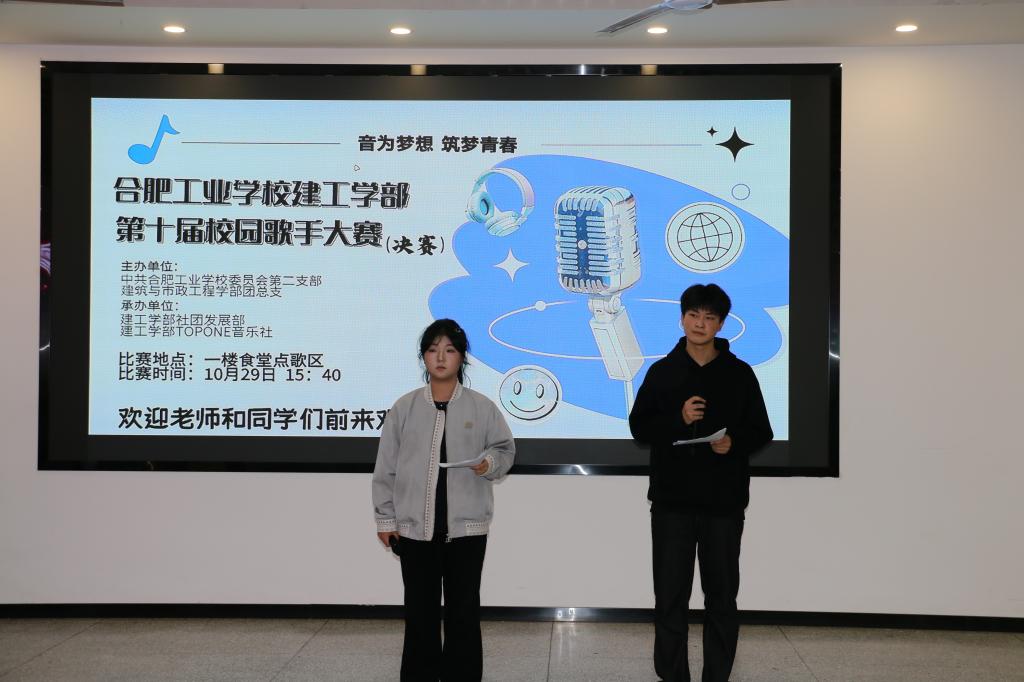 10月29日,合肥工业学校建筑与市政工程学部第十届校园歌手大赛决赛圆满收官。本次大赛以“音为梦想,筑梦青春——建工学子唱响新时代”为主题,由中共合肥工业学校委员会第二支部、建工学部团总支主办,TOPONE音乐社与社团发展部联合承办,旨在丰富校园文化生活,为学子搭建展示自我的平台。