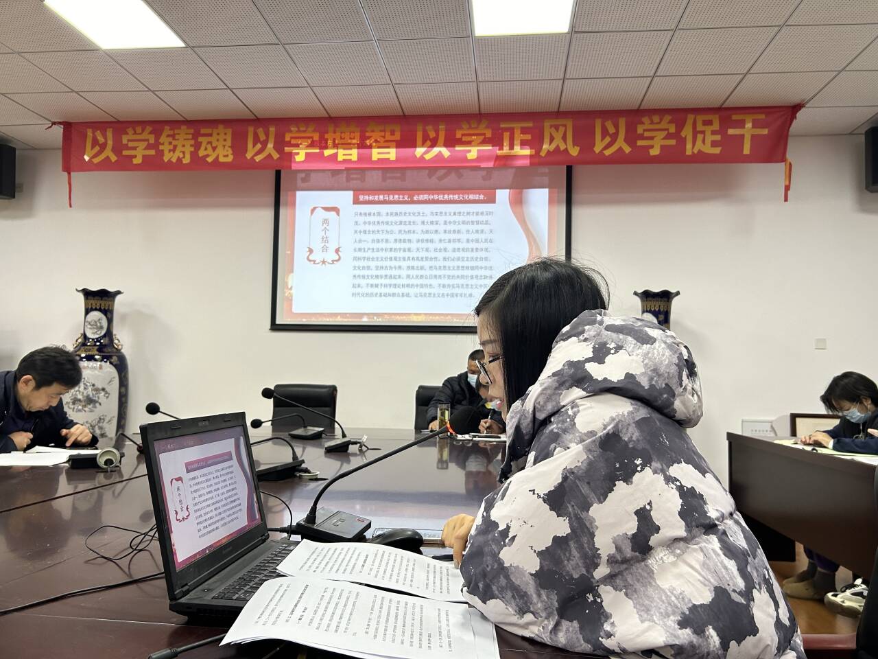 谢丹委员从“习近平新时代中国特色社会主义思想世界观方法论的实践依据”,“习近平新时代中国特色社会主义思想世界观方法论的科学内涵”,“习近平新时代中国特色社会主义思想世界观方法论的丰富发展”三个方面结合学校工作实际和个人理解体会进行讲解,最后要求每位党员同志深入学习领会习近平新时代中国特色社会主义思想世界观和方法论,为学校高质量的发展出谋划策并付诸实践。