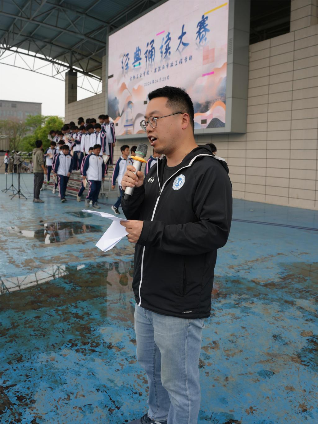 4月29日下午,合肥工业学校第二支部、建工学部在操场举办经典诵读比赛暨四月主题党日活动,此次比赛旨在弘扬中华优秀传统文化,提升学生们的文化素养和语言表达能力,同时也为校园文化生活增添了一抹亮色,建工学部副主任陶去尘主持活动。