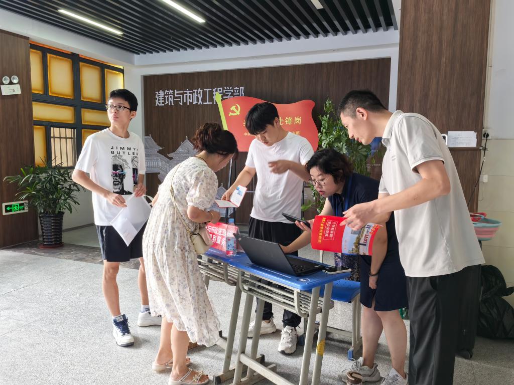 在闷热的夏日,党员志愿者面带微笑,耐心解答新生及家长的各类问题,从报到流程到校园导航,从行李寄存到住宿安排,无不细致入微。支部书记范侨、教学主任陶去尘、学管主任王萍、支部委员刘光余、孙智取、潘蕾,党小组长孙敏、朱菁、陈明秀和汤浩、殷俊、李林、张楚渝、骆昌健等党员同志也积极投入,用实际行动诠释了党员的责任与担当。
