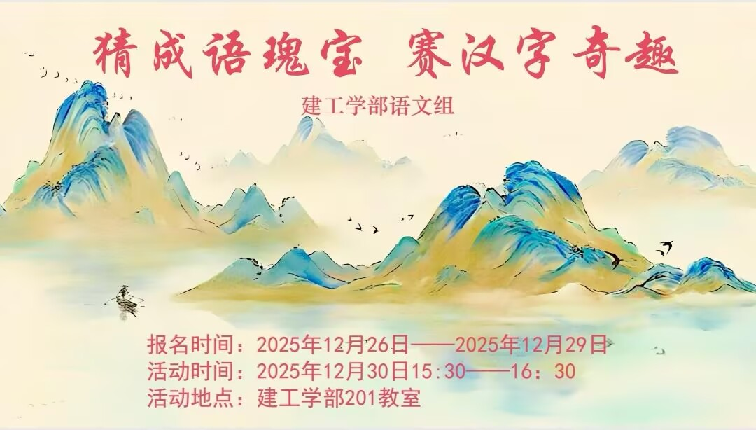 为展职校风采,承文化精髓,12月30日下午建工学部语文组举办以“猜成语魂宝,赛汉字奇趣”为主题的文化竞赛活动。来自各年级各专业的80余名学生在趣味比赛中感受汉字与成语的魅力。