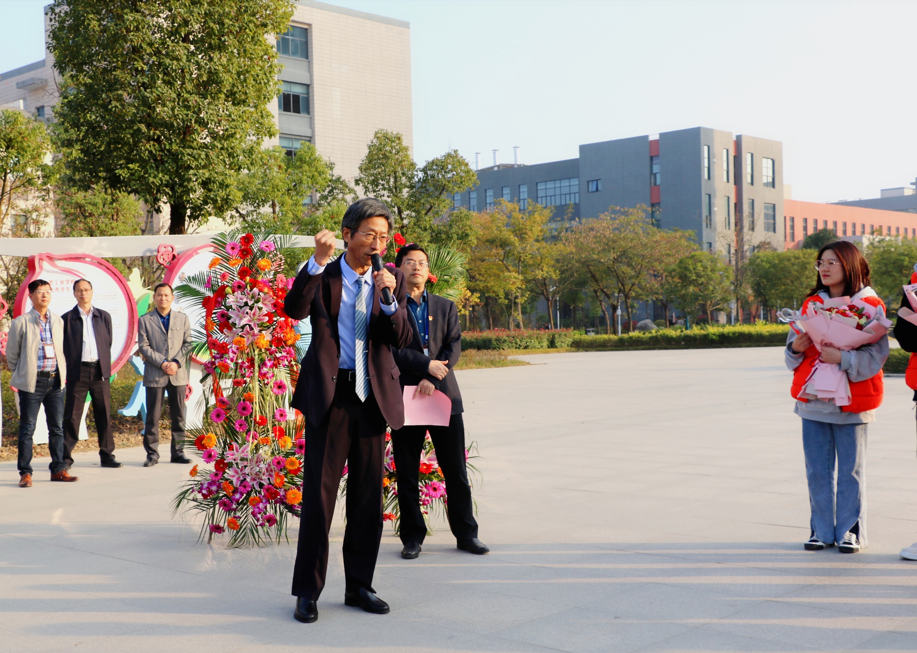11月16日下午,电子商务代表队意气风发,载誉而归。校领导为凯旋举行欢迎仪式,送上掌声与鲜花。一句发自内心的“感谢”,副校长曹文华言明大赛团队的不易和优秀;“你若盛开,清风自来”指导教师方英的动人发言道出备赛的艰辛和坚持;“鼎定匠梦,再创辉煌”,校长王靖的鼓励更令人精神为之振奋。“成功属于勇毅而笃行的人”,电子商务团队在赛场上展现出的昂扬斗志和誓争第一的决心,深深感染了每一位工业学子。