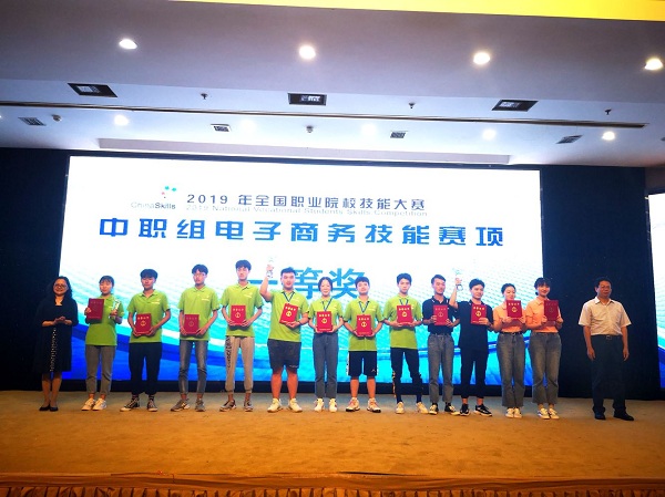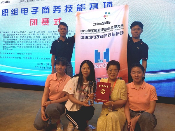 6月1日,儿童节,一个有意义的节日,对于我校而言,更注定是一个不平凡的日子:我校参赛选手胡泽雨、刘紫颖、徐倩、张杨杨在2019全国职业院校技能大赛中不畏如林强手,沉着出色发挥,从全国70支代表队中脱颖而出,一举夺得中职组电子商务技术项目金牌。喜讯传来,全校师生奔走相告,欢欣鼓舞,沉浸在胜利的喜悦之中。指导老师方英、郑美媛更是激动万分,喜极而泣:国赛,我们赢了!