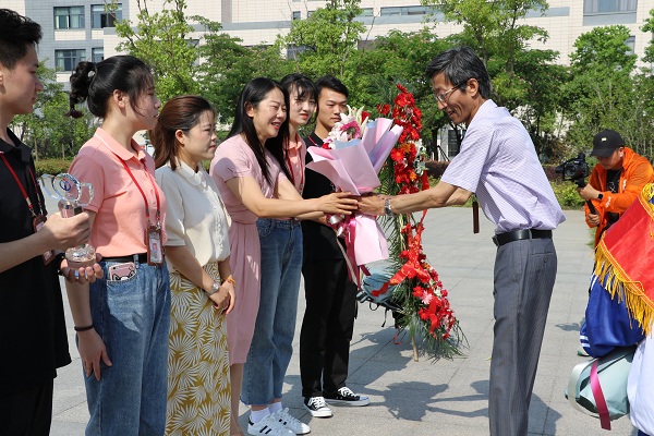 三年磨一剑,而今勇夺金!电子商务技术赛项团队载誉而归,伴随着鲜花和掌声,我校领导送上了慰问和祝贺。意气风发的步伐迈出工业人的风采,潸然泪下的讲述道不尽备赛的艰辛。是金子总会发光,一句“霸气,工业人!我为工业自豪!”,道出了我们共同的心声。