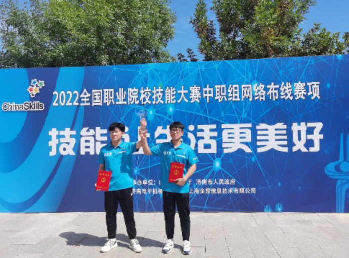 网络布线赛项在“国赛”中连续2年夺得金牌是我校学子肯吃苦、勇奋斗优良传统的延续,也是对大赛导师团队夜以继日辛勤付出、悉心辅导的最好回报,更是学校深入推行以赛促教、以赛促学,构建常态化技能训练体系的阶段性成果。祝愿我校师生能继续保持热爱,不骄不躁,不负韶华,不畏将来。