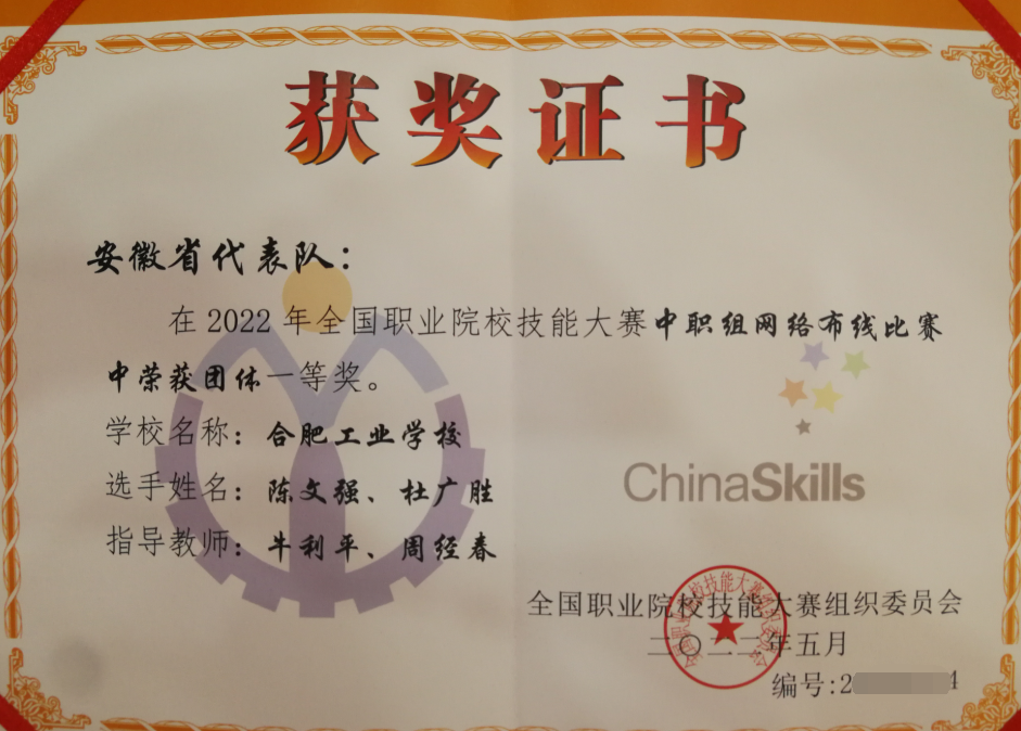 8月27日,2022年全国职业院校技能大赛中职组“网络布线”赛项在山东济南电子机械工程学校圆满落幕。来自全国各省市58支代表队共116名选手参加本次比赛。合肥工业学校两名学生陈文强、杜广胜代表安徽省参加该赛项的比拼,经过2天的激烈角逐,我校参赛队伍勇夺金牌,再续辉煌!