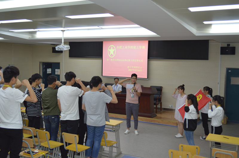 2017年5月11日下午两节课后,建工学部在一楼阶梯教室隆重举行第二期业余团校结业典礼暨新团员宣誓仪式。本次仪式由高风老师主持,出席结业典礼的有合肥工业学校团委负责人黎扬书记,建工学部负责人方波部长。