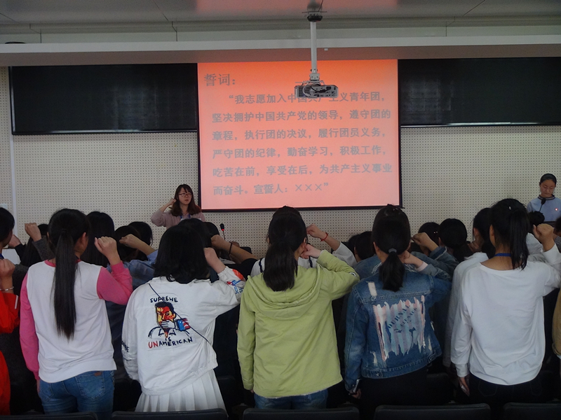 2017年5月4日下午1:00,合肥工业学校服饰与文化艺术学部阶梯教室223青春激昂、掌声振振,第二期中学生业余团校结业典礼暨新团员入团宣誓仪式在这里隆重举行。