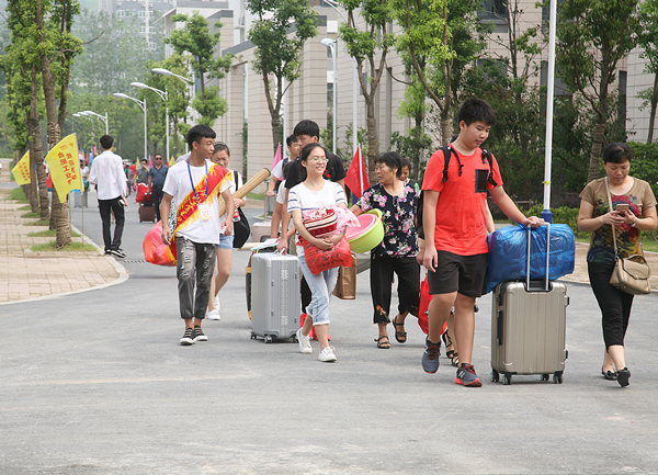 为确保新生报到工作顺利进行,学校事先进行了精心部署,各部门明确分工、通力配合,早动手、细落实,对校园环境、宿舍卫生进行了全面的整理和清扫,力争使各项准备工作做到最好。为了方便广大家长,校团委组织了学生会青年志愿者队伍服务新生家长和学生。在校门口、教学楼,学生食堂办卡处、公寓门口等各个责任区,志愿者们耐心地回答学生和家长提出的各种问题,详细讲解学校的有关安排,力争使每位家长都能够尽快办理完手续,同时争相为家长们搬运行李。尽管天气炎热,但大家服务家长和新生的热情不减。