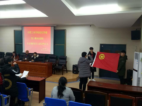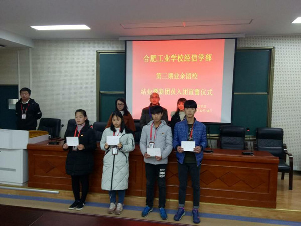 2017年12月14日中午12:40,经信学部在二楼阶梯教室隆重举行第三届业余团校结业典礼暨新团员宣誓仪式。本次仪式由王月霞老师主持,出席仪式的有学部学生管理负责人章曙滨、团委司贺娟、服饰学部柳青青.
