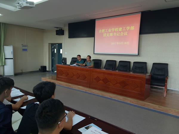 2017年9月18日下午两节课后,建工学部在一楼阶梯教室召开全体团支部书记会议,校团委负责人黎扬、学部团总支负责人高风、49个班级的团支部书记参加会议。