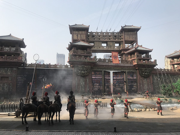 大型真人剧场《淝水之战》,重温历史上著名的战役,在武术、杂技、声光电特效带来的视觉冲击下,学生们看的如痴如醉,仿佛进入了硝烟弥漫、风起云涌的古战场,在潜移默化中接受历史文化的熏陶,了解历史背景。