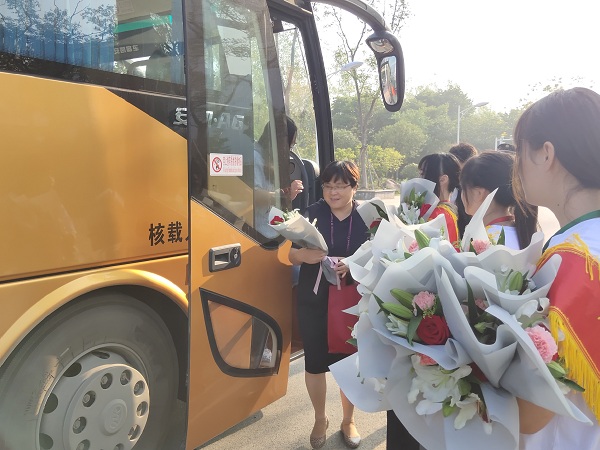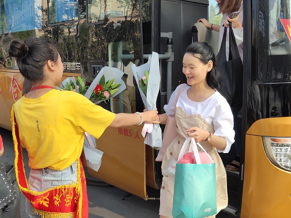 莘莘学子意,浓浓师生情。2019年9月10日清晨,在第35个教师节来临之际,校团委组织30名学生在校门口及各学部门口开展向老师献花、献祝福活动。