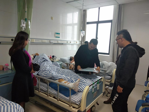 学校领导高度重视周丽廷同学的病情,并安排学生处副处长丁志方,足球教练刘欣老师于4月2日前往医院看望。丁志方向学生家长和主治医生详细了解了周丽廷同学的伤势和治疗情况,叮嘱家长一定要做好护理和康复工作。丁志方代表学校表达慰问,递交2000元慰问金,祝福周丽廷早日康复。