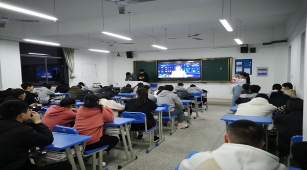 新学期开学以来,在学校和学生处的统筹指导下,我校经信学部率先成为“试点”,于2月22日晚自习正式开展“新闻进班级”活动,坚持组织学生每晚6:30-7:30准时收看中国诗词大会、央视新闻等节目。