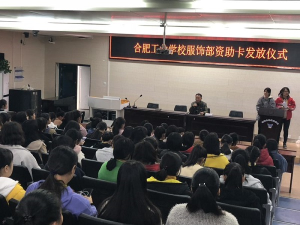 为认真贯彻党的十九大精神,全面落实国家资助政策,帮助家庭经济困难学生顺利完成学业,把党的政策关怀落到实处,2018年11月15日中午,合肥工业学校三个学部分别在学部阶梯教室举行了2018年度秋季中职资助卡发卡仪式。