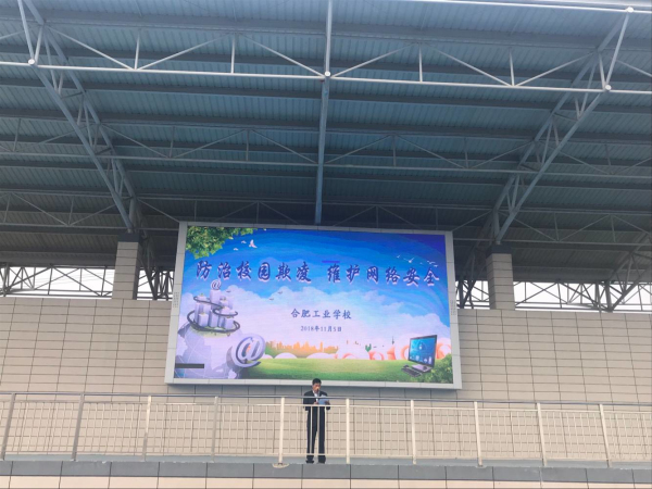 “校园欺凌”及“网络安全”问题是近些年来在应试教育的冲击下,许多学校重视知识教育,轻视法制与规则教育,忽视生命、尊重以及心理教育等非硬性教育而产生的不和谐的校园现象,为了保护学生安全,形成防治中小学生欺凌长效机制,普及网络安全知识,提高网络素养,创造和谐校园环境。合肥工业学校于11月5日,近万名师生齐聚在学校操场,扎实开展了“防校园欺凌安全教育暨网络安全”主题教育活动。本次主题活动由学生处处长张宗权主持。