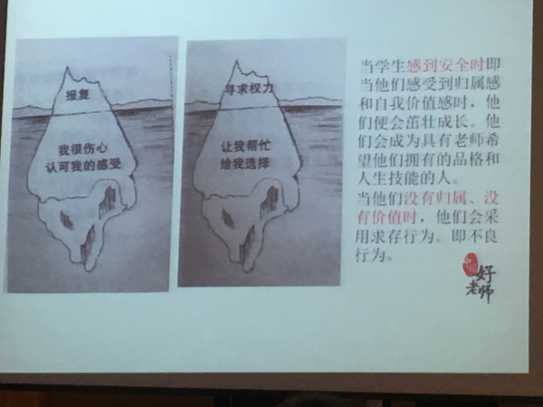 最后一场讲座由全国模范教师郭玉良主讲,郭老师不仅是一位优秀班主任,也是国家二级心理咨询师。她先从游戏入手,拉开讲座的主题——“教育从心出发”,讲座列举了校园中棘手的问题,从学校、家庭、学生几方面层层剖析,并站在心理学角度提出解决问题的办法。