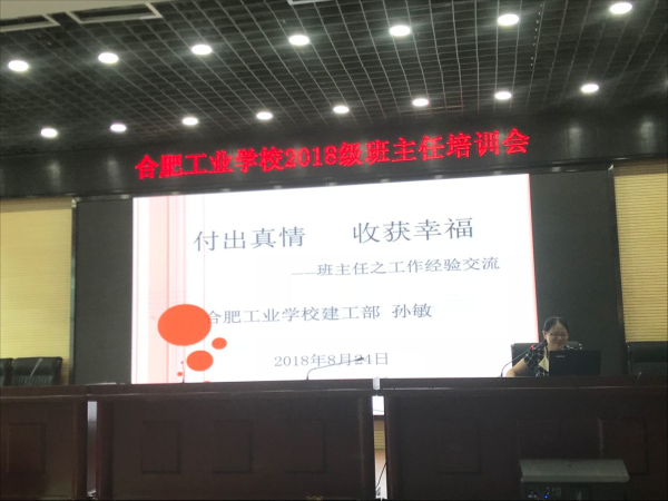 会议从经信学部章曙滨副主任介绍学部学生管理开始,接着合肥市先进班集体班主任服饰学部江玲老师和建工学部孙敏老师介绍班级管理成功经验。两位优秀班主任都提到班主任要具备爱心,公心,细心,恒心,责任心,宽容心,才能更好的完成班主任工作,成为一名优秀的班主任。
