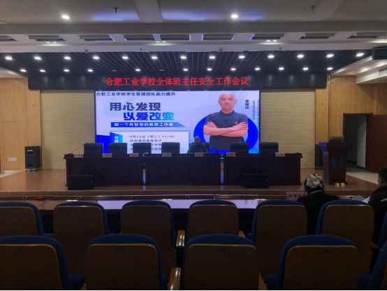 4月25日下午3:40合肥工业学校在科技楼四楼会议室召开全体班主任安全工作会议。全体班主任、各学部学管副主任、相关部门负责人参加会议,校党委书记、校长孙健出席会议并讲话,学生处处长杨晓宁主持会议。