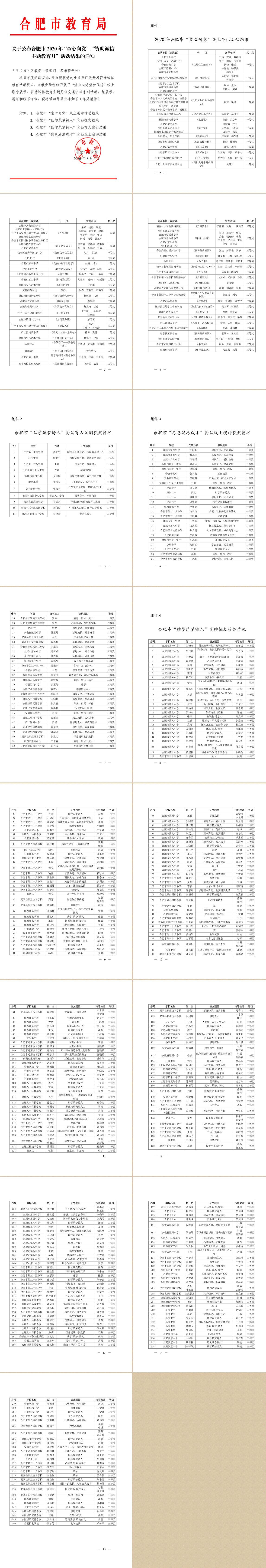 关于公布合肥市2020年“童心向党”、“资助诚信主题教育月”活动结果的通知