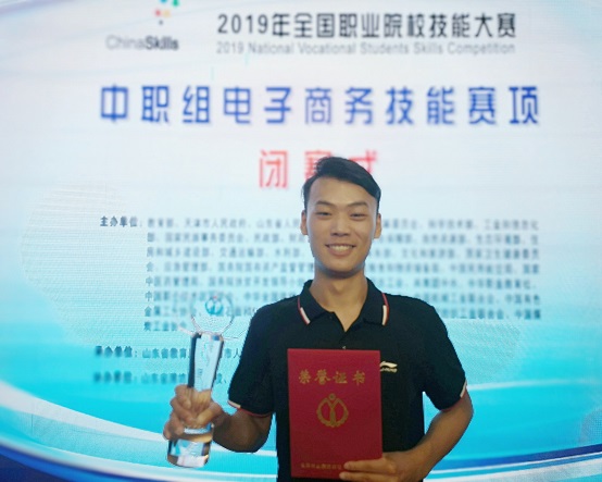 从2017年第一次参加行业赛取得的省赛特等奖,到2018年第二次行业赛的全国一等奖,再到2019年全国职业院校中职组电子商务技能大赛的金奖,这一路走来,张杨杨洒下了多少汗水和泪水,无人知晓。让人感动的是,在挫折和失败时他没有自卑和放弃,在获胜和成功时他没有骄傲和自满,他仍然在追求梦想的路上!