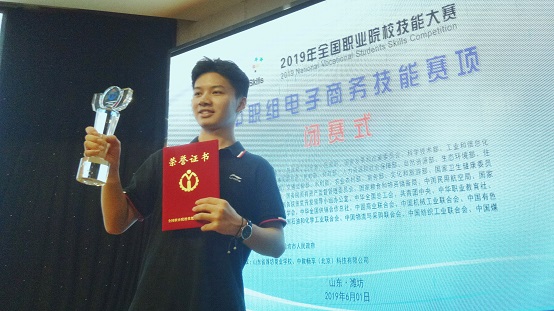调整好心态的胡泽雨在集训团队帮助下,准确定位,重新拟定训练计划,预估错误,进行实战演练。出征选拔赛前,胡泽雨接到父亲重病住院的消息,突如其来打击没有击垮这位坚毅的大男孩,他决心用优异成绩来回报大家的期待。国赛选拔赛顺利突围,2019年6月1日,山东潍坊,决战国赛。胡泽雨和团队从来自全国各地的70支队伍中脱颖而出,一举夺取了全国职业院校中职组电子商务技能大赛团体项目金奖!