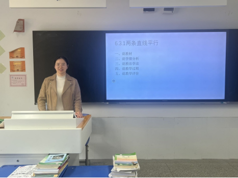 首先,胡凤华老师为我们带来《两条直线的位置关系——平行》现场说课,她从教学内容、学情分析、教学目标、教学结构、教法、教学过程、板书、设计评价等方面进行,整个过程详细生动,环环相扣,深入浅出,效果非常突出。